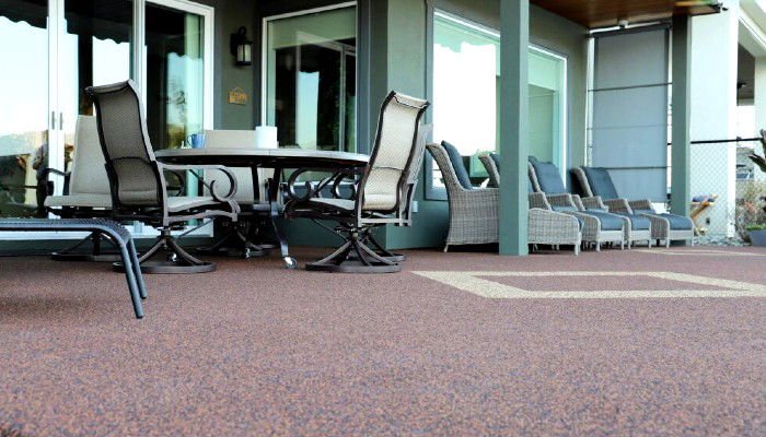 Concrete, tile, stone, and even some pavers require annual sealing, or sealing every couple of years. Rubber Stone, on the other hand, just needs a pressure wash once or twice a year and resealing every 4–5 years.